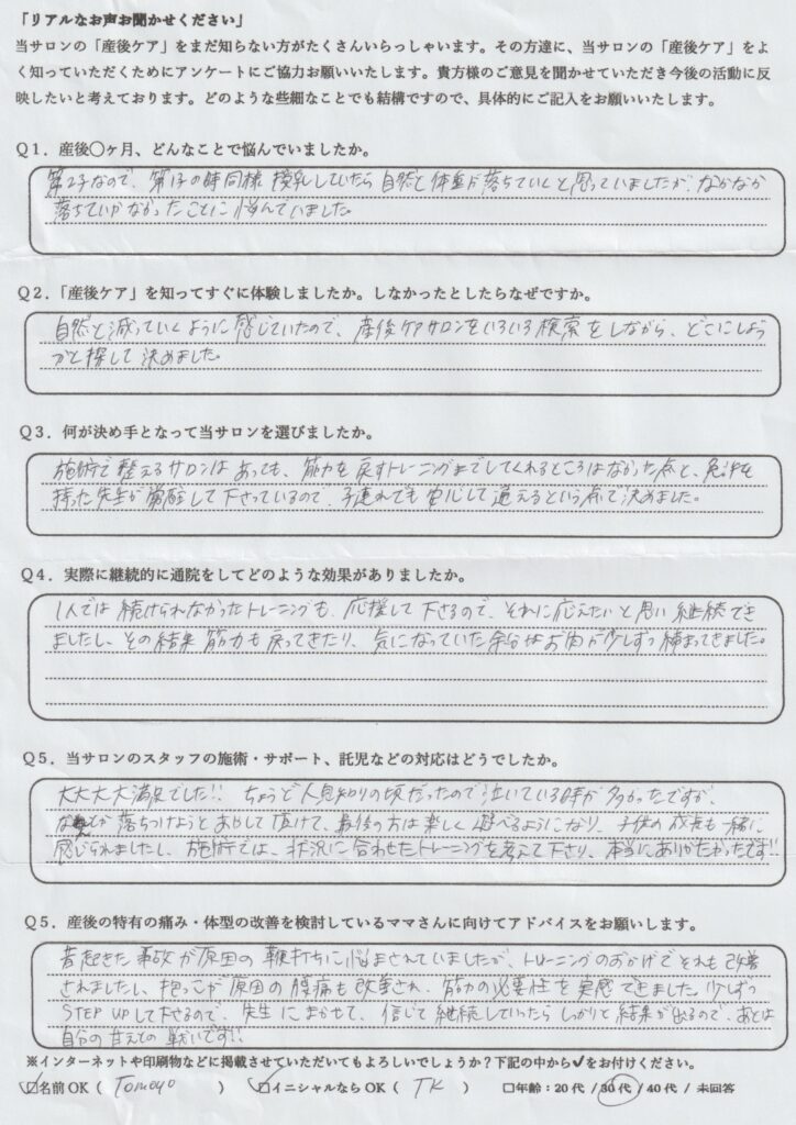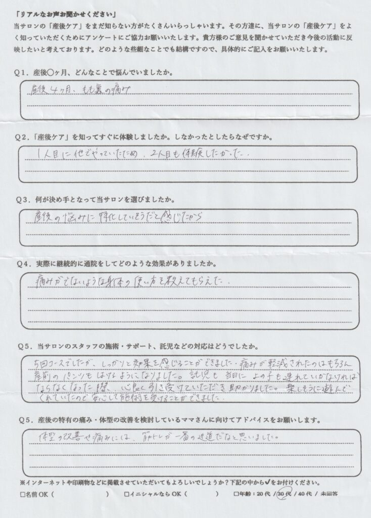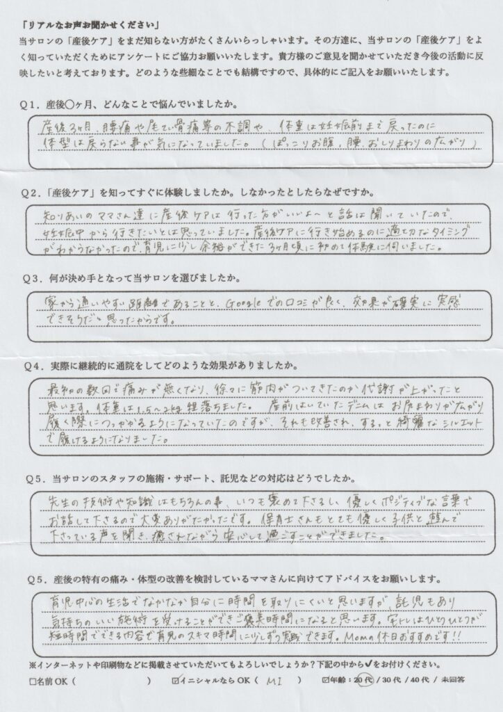 卒業したママさんの声|大大大大満足の産後ケア【整体|緑区】