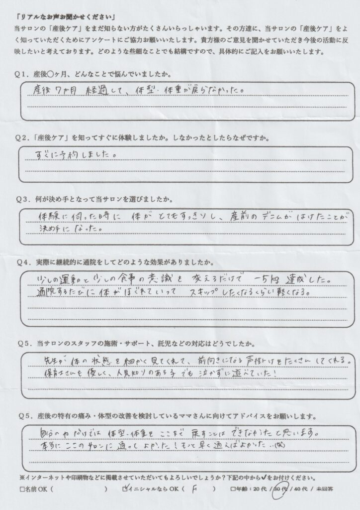 卒業したママさんの声|大大大大満足の産後ケア【整体|緑区】