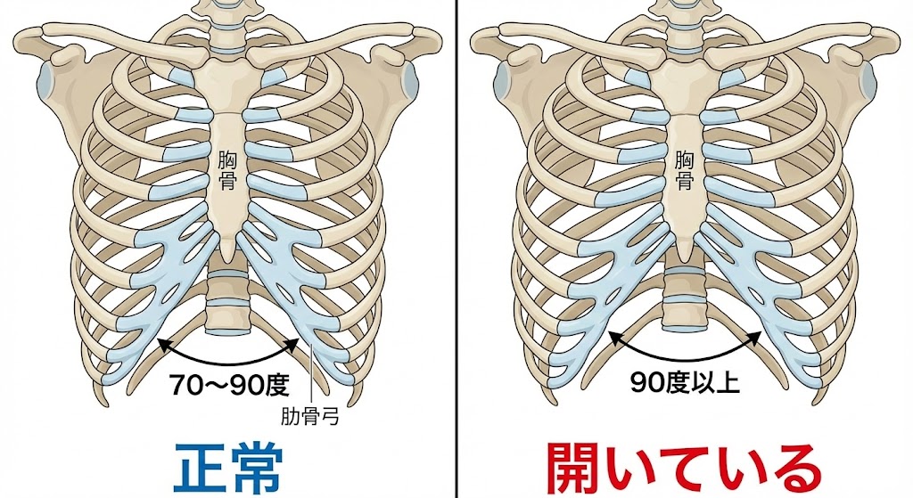 肋骨が開いていると