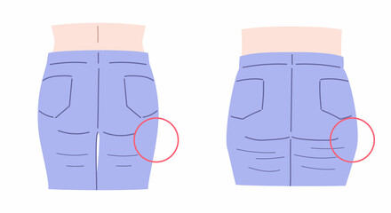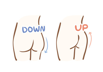 お尻が横に広がり、垂れて太ももと同化する(四角いお尻)
